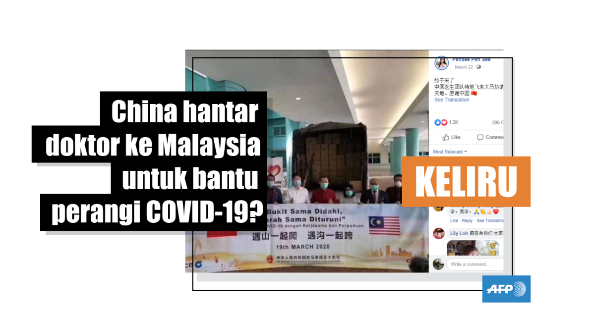 Foto itu diterbitkan di laman Facebook rasmi Kedutaan China di Malaysia di sini pada 19 Mac 2020. Posting itu berjudul: “Kedutaan China Sumbang Bantuan Pertama Peralatan Perubatan Kepada Malaysia.”