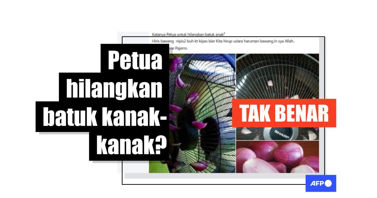 "Katanya Petua untuk hilangkan batuk anak-anak. Hiris bawang nipis-nipis buh kt kipas biar Kita hirup udara haruman bawang," bunyi kapsyen pada siaran Facebook yang dikongsi dalam satu kumpulan yang mempunyai lebih 200,000 ahli pada 21 Januari.