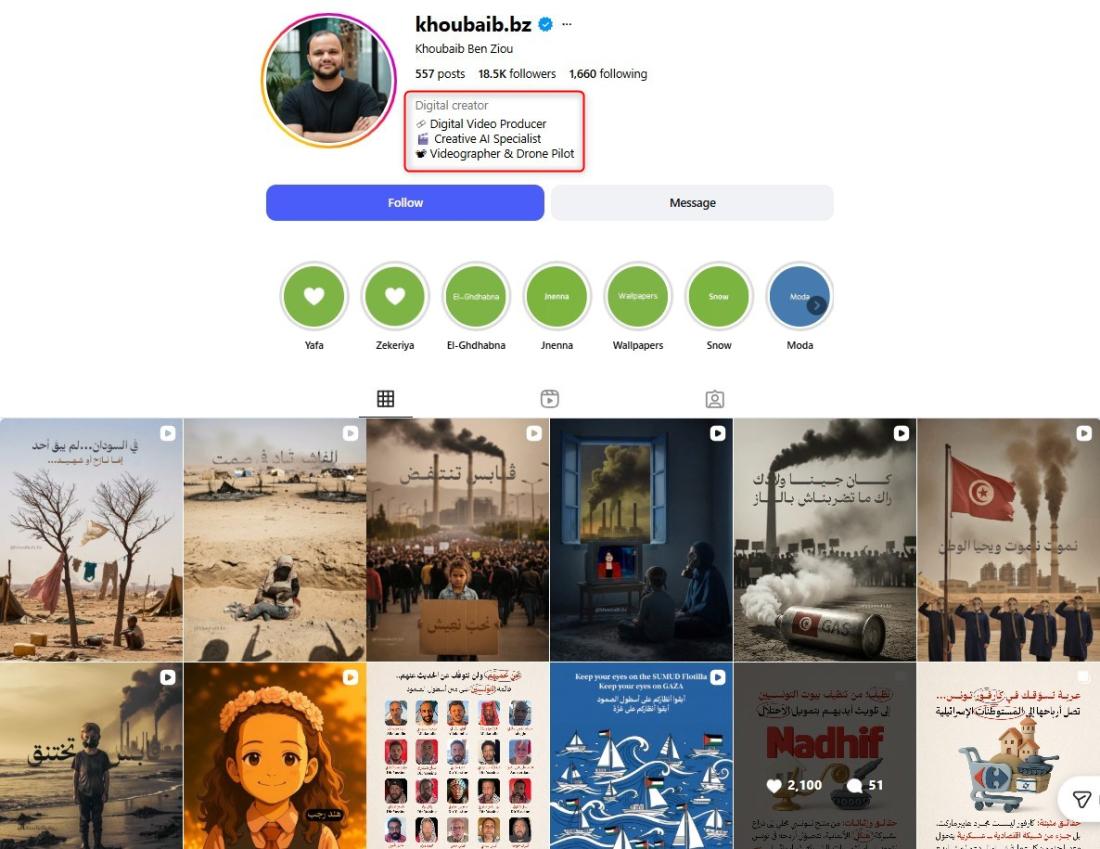 Akaun itu kerap menyiarkan imej janaan AI mengenai pelbagai topik, termasuk konflik di Timur Tengah.