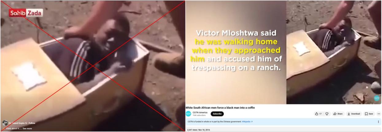 Video itu bertajuk, “Lelaki kulit putih Afrika Selatan memaksa lelaki kulit hitam masuk ke dalam keranda.”