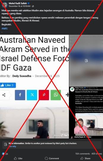 "Mulanya mereka nak salahkan Muslim atas kejadian serangan di Australia. Namun bila disiasat, rupanya geng diaaa," bunyi sebahagian siaran Facebook yang dikongsi pada 16 Disember 2025.