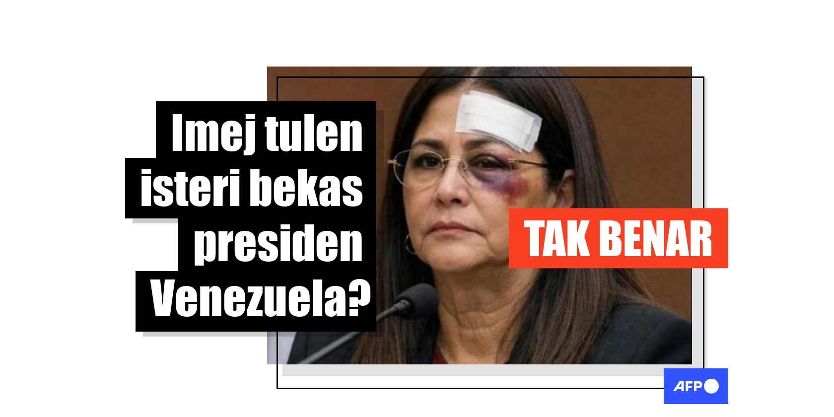 Selepas bekas presiden Venezuela Nicolas Maduro dan isterinya, Cilia Flores, ditahan oleh pasukan khas Amerika Syarikat dan dibawa ke mahkamah di New York pada 5 Januari 2026, satu imej yang kononnya menunjukkan Flores dengan mata lebam dan dahi berbalut mula tular di media sosial dalam pelbagai bahasa. Namun, imej tersebut berkemungkinan besar dijana menggunakan kecerdasan buatan (AI). Walaupun Flores hadir di mahkamah dengan balutan pada wajahnya, lakaran mahkamah serta foto dan video media menunjukkan beliau berambut perang dan memakai pakaian berbeza.