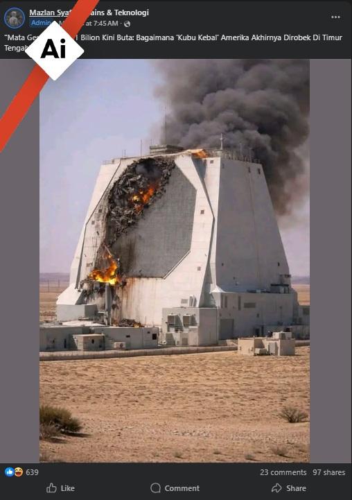 Imej radar AS di Qatar dimusnahkan Iran sebenarnya dijana AI