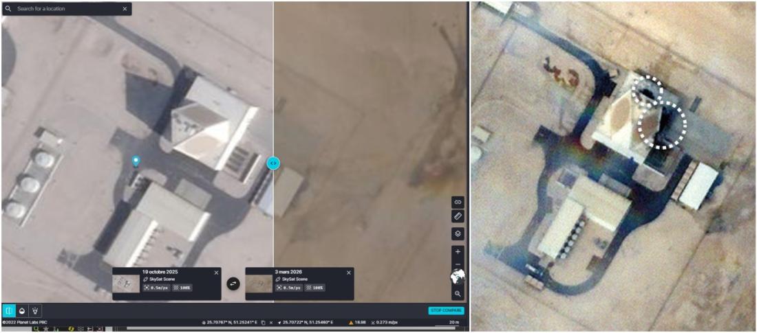 Namun gambar blok radar yang musnah itu tidak tulen. Imej berkenaan mula muncul seawal 28 Februari, beberapa hari sebelum Kementerian Pertahanan Qatar melaporkan serangan ke atas Pangkalan Udara Al-Udeid pada 3 Mac (pautan arkib).