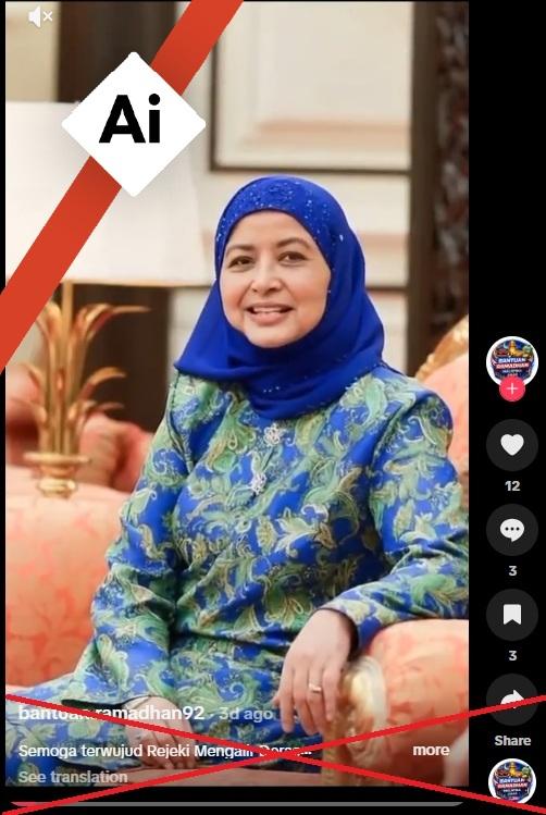 Sementara itu, tanda-tanda visual dan audio yang tidak konsisten pada klip tersebut seperti kelipan mata dan pergerakan mulut yang janggal menunjukkan video wajah Raja Zarith Sofiah itu telah dimanipulasi menggunakan alat AI.