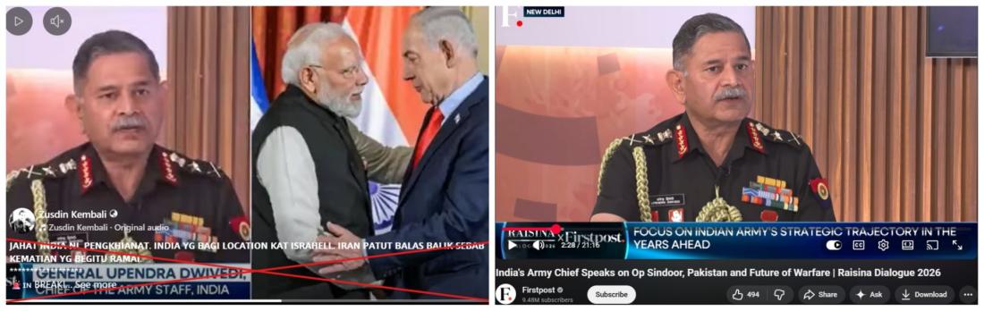 Video tersebut bertajuk: "India's Army Chief Speaks on Op Sindoor, Pakistan and Future of Warfare | Raisina Dialogue 2026".