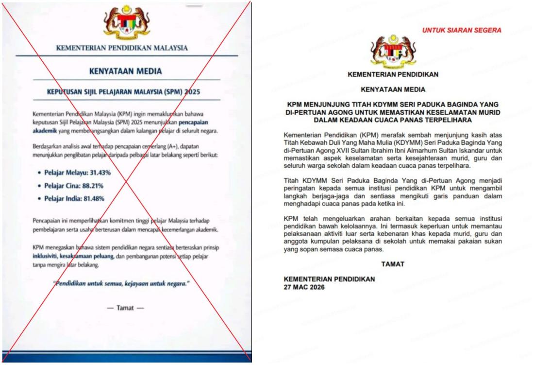 Siaran palsu kongsi kenyataan media keputusan SPM 2025 ikut kaum