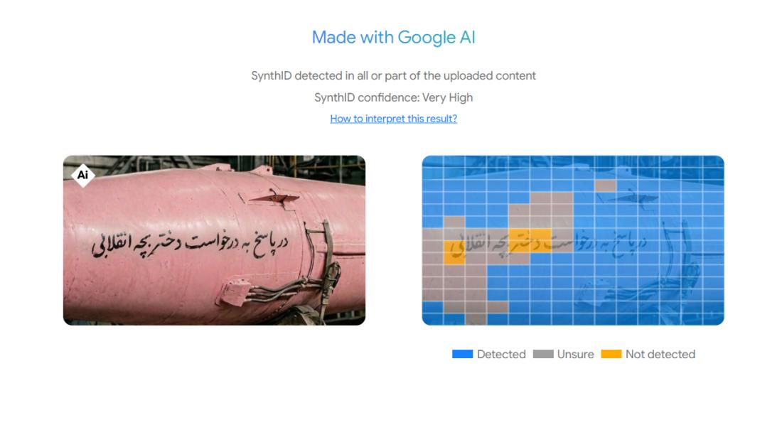 Pengesan SynthID AI oleh Google mengesahkan imej itu dijana kecerdasan buatan menggunakan salah satu platform AI syarikat itu.