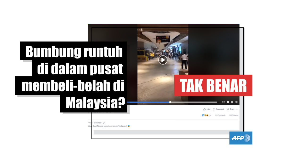 Pos Facebook dengan tarikh yang mengelirukan itu telah disebarkan pada 27 Ogos 2019 di sini dan dikongsikan lebih daripada 1,200 kali. Kapsyennya menyatakan: “Pavilion, Bukit Bintang paip pecah oleh itu bumbung runtuh.”