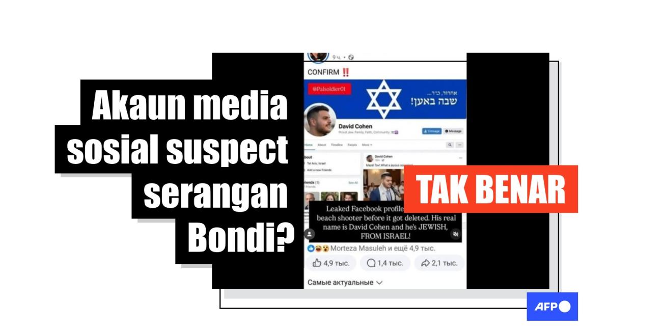 Siaran salah dakwa penembak Pantai Bondi warga Israel, kongsi imej palsu