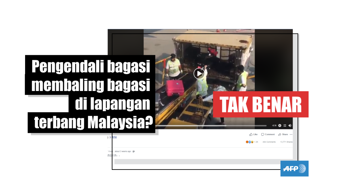 Diterjemahkan dari bahasa Inggeris ke bahasa Malaysia, tajuk repot menyatakan: “Pengendali bagasi lapangan terbang Hong Kong dirakam membaling bagasi dalam video Facebook yang tular.”