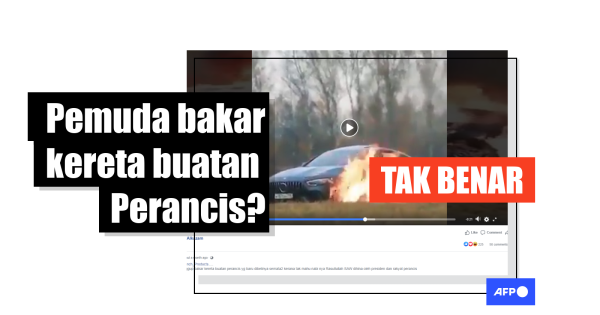 Sebahagian kapsyennya menyatakan: “Pemuda sanggup bakar kereta buatan perancis yg baru dibelinya semata2 kerana tak mahu nabi nya Rasullullah SAW dihina oleh presiden dan rakyat perancis.”