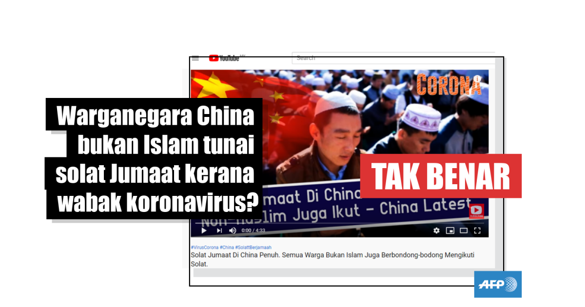 Dakwaan itu tak benar. Video tersebut sebenarnya menunjukkan solat sunat Aidilfitri di Yiwu, sebuah bandar di bahagian timur China, yang banyak menarik para pedagang Muslim dari luar negara, pada Jun 2019, sebelum penularan wabak novel koronavirus.
